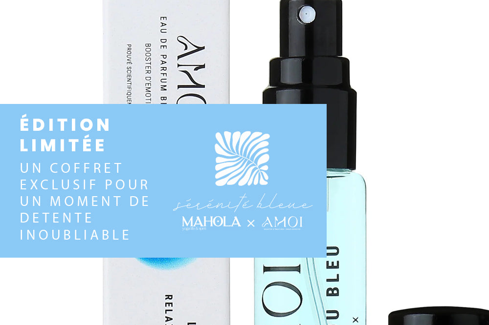 Découvrez notre collaboration limitée MAHOLA x AMOI : un duo pensé pour créer un véritable rituel de détente, où l’olfaction émotionnelle rencontre l’artisanat ancestral du yoga.