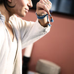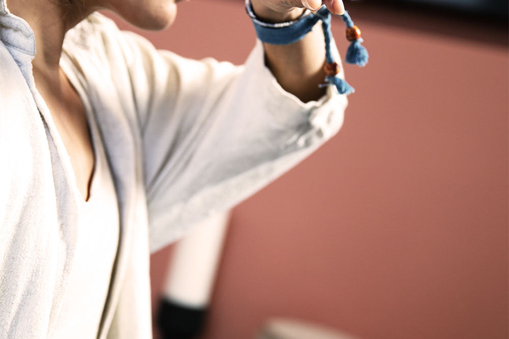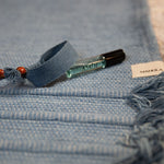 Pensé spécialement pour cette collaboration, ce bracelet en coton bleu, fabriqué en Inde, est le support de votre rituel.